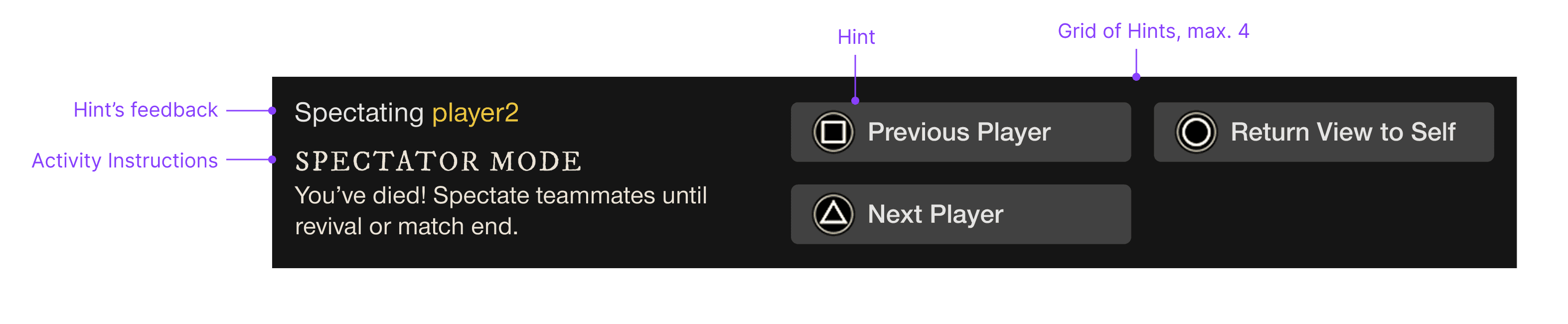Spectator Mode: Enables players to stay engaged in a match after death, preserving match completion and progression